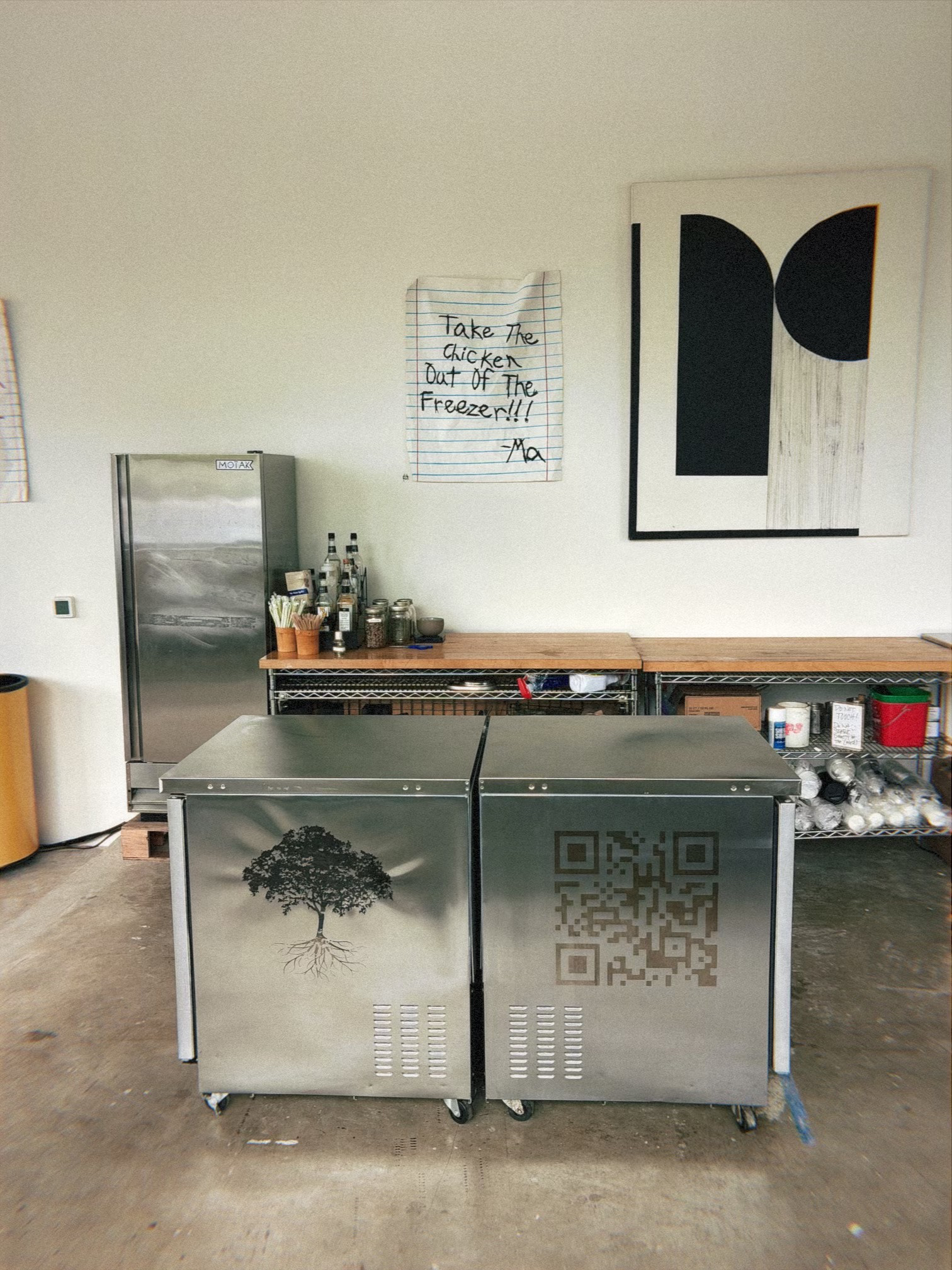 -on site custom graphics laser engraved on fridges and metal table